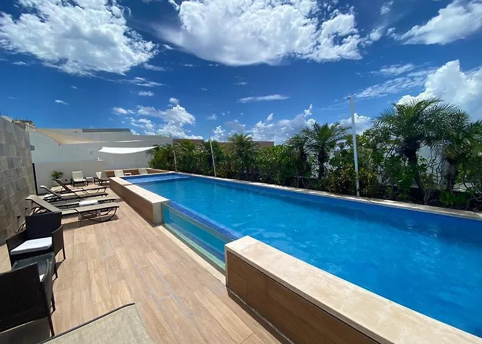 플라야 델 카르멘, 킨타나로오 공항은 아파트에서 차로 약 5분 이내의 거리에 있습니다. 숙소의 손님들이 옥상 수영장에서 수영할 수 있습니다.